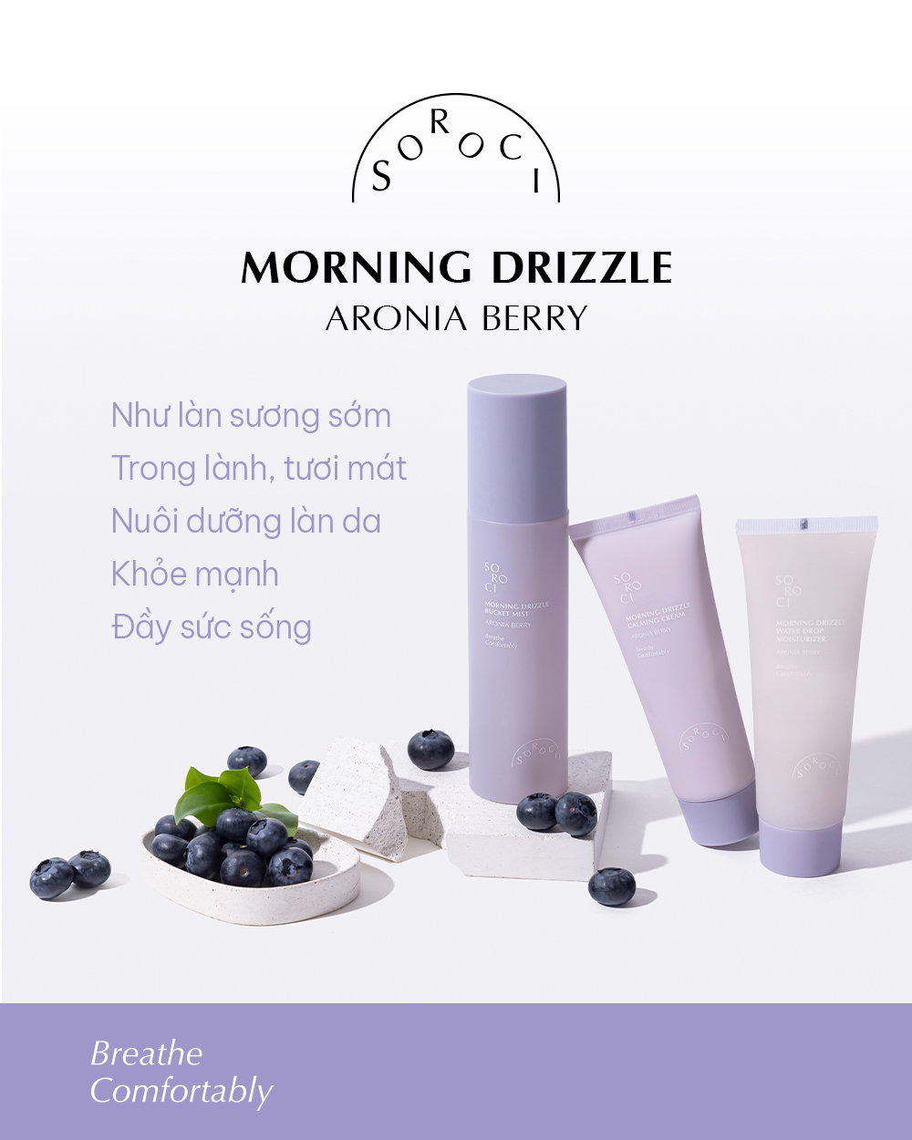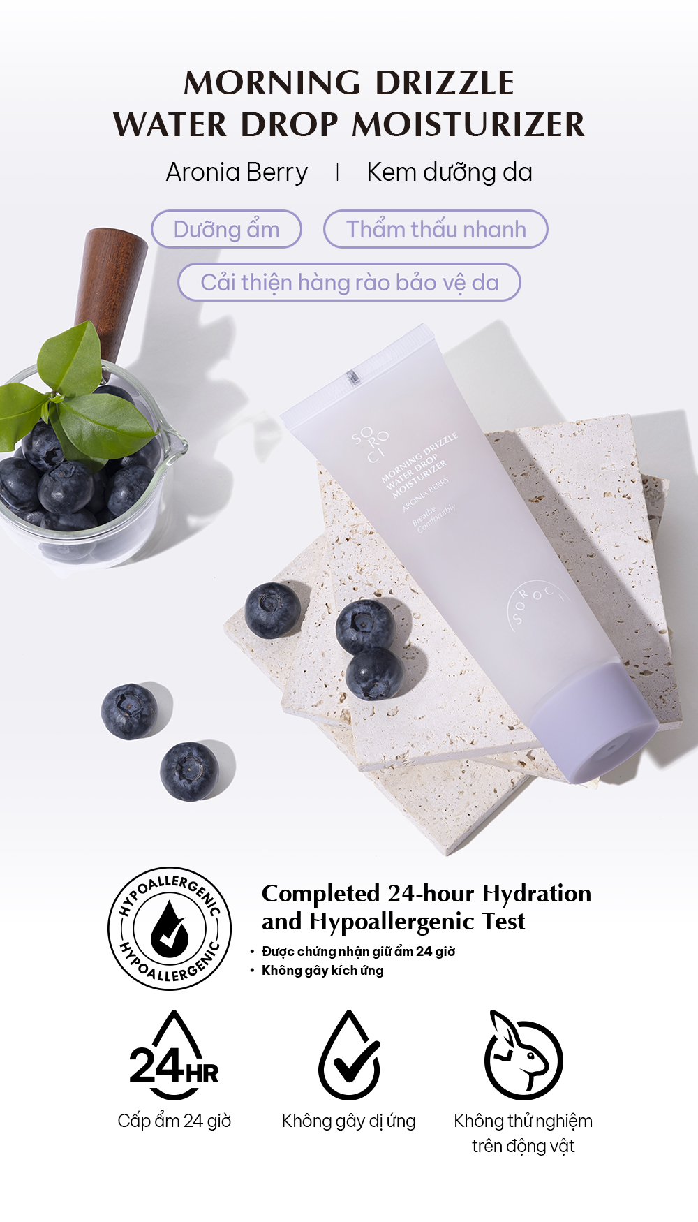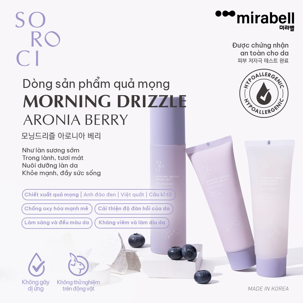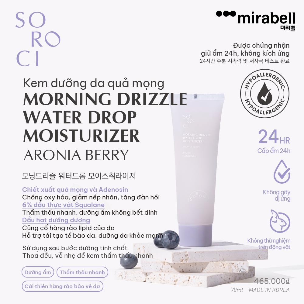 Tinh chất dưỡng ẩm Soroci Morning Drizzle Water Drop Moisturizer chứa các chất chống oxi hóa từ các quả mọng và chiết xuất ngọc trai cấp ẩm cho da và làm sáng da và tái tạo da