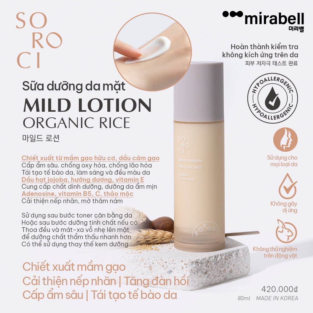 Sữa dưỡng Soroci Mild Lotion là sản phẩm giúp cấp ẩm cho da, dưỡng trắng sáng da, giúp làn da trở nên mịn màng