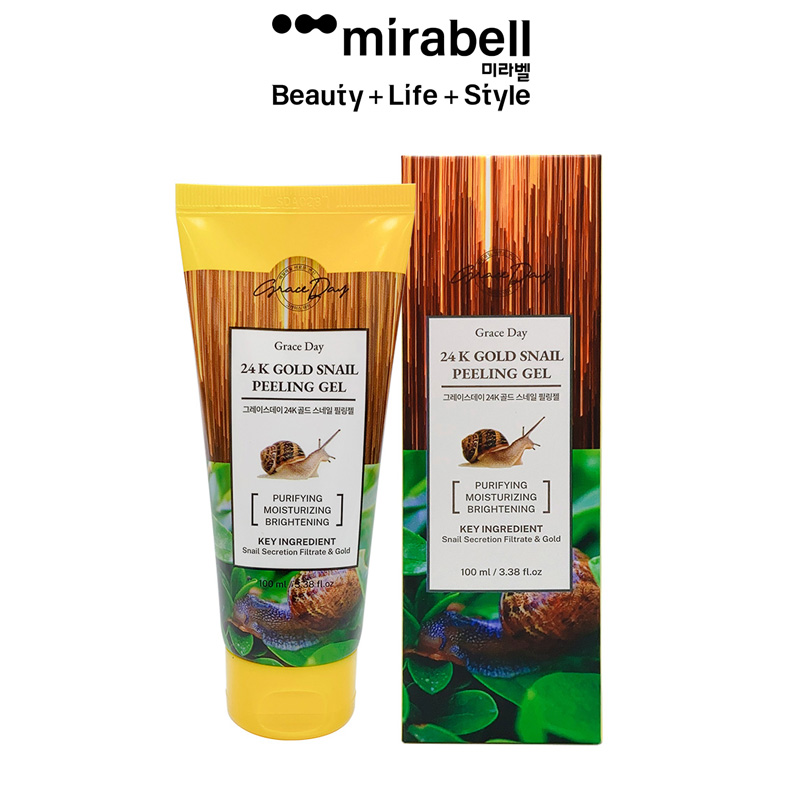 Tẩy da chết Graceday 24K Gold Snail Peeling Gel chứa chiết xuất nhớt ốc sên và vàng 24K giúp dưỡng sáng da, loại bỏ nhẹ nhàng tế bào chết và các chất bã nhờn trong lỗ chân lông mà không gây kích ứng.