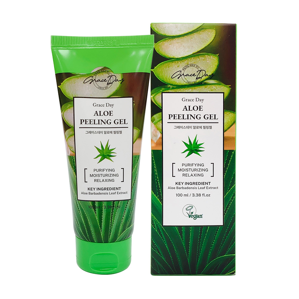 Graceday Aloe Peeling Gel chứa chiết xuất từ lô hội giúp làm dịu da, đồng thời loại bỏ nhẹ nhàng tế bào chết trên da mà không gây kích ứng