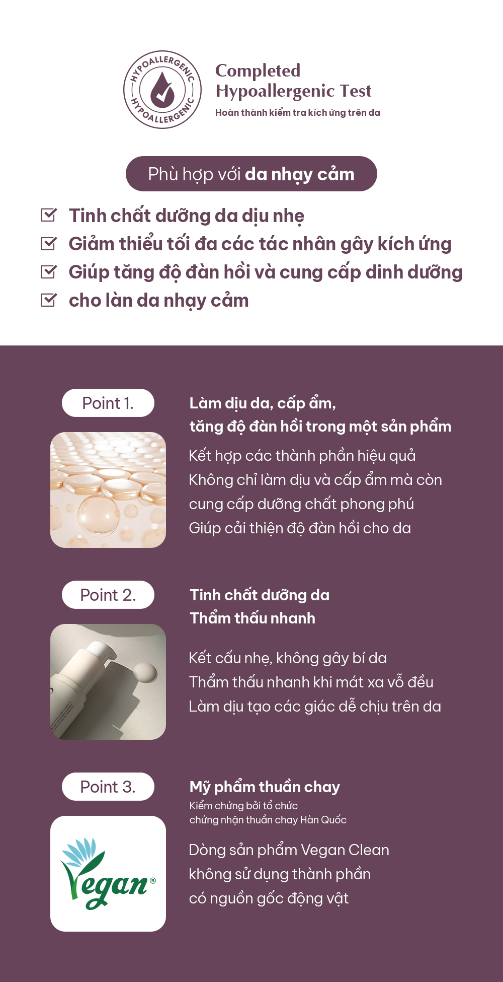 Chắt lọc tinh túy từ những thành phần 100% đến từ thiên nhiên có công dụng hiệu quả trong làm đẹp, giúp làm dịu làn da nhạy cảm. Cung cấp độ đàn hồi mạnh mẽ với huyết thanh cho làn da bị kích ứng từ môi trường bên ngoài.