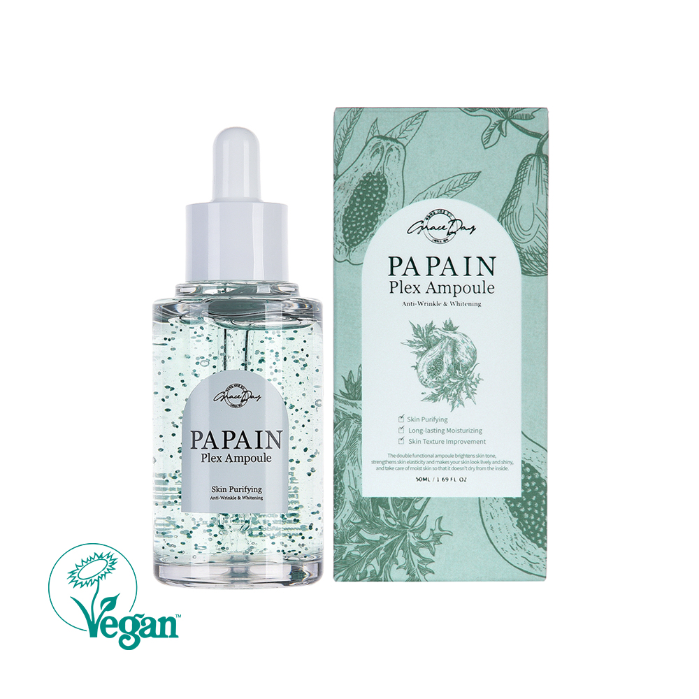 Ampoule được biết đến với lượng dưỡng chất “khủng” với nồng độ cao hơn hẳn serum, ampoule được sử dụng như “vũ khí bí mật” của phái đẹp phù hợp với mọi làn da. Ampoule chăm sóc chuyên sâu chưa enzyme papain, chiết xuất dứa và chiết xuất lựu giữ cho kết cấu da sạch sẽ và mịn màng, giữ ẩm cho da mà không gây bết dính