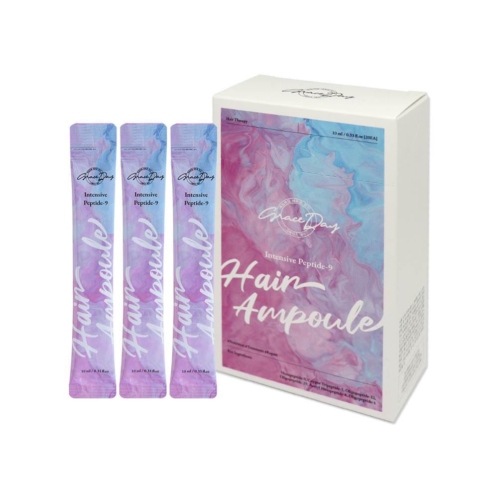 Graceday Intensive Peptide-9 Hair Ampoule chứa tinh chất đậm đặc chứa peptide, khi hòa với nước sẽ chuyển thành dạng kem, cung cấp dinh dưỡng, điều trị tóc hư tổn, giúp tóc khỏe mạnh, đàn hồi và óng mượt